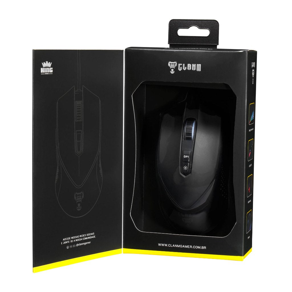 O mouse gamer King da Clanm combina precisão e velocidade para dominar qualquer partida. Com sensor PixArt 3325 de até 10.000 DPI e switches Huanyu,