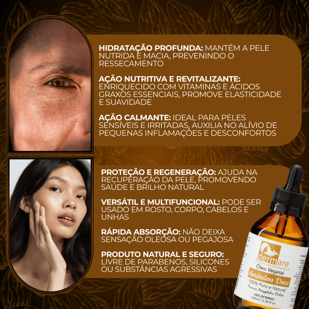 O óleo vegetal de amêndoa doce é extraído das sementes de amêndoas, e é um óleo suave e nutritivo que é amplamente utilizado em produtos de cuidados pessoais, como hidratantes corporais, loções, sabonetes e óleos de massagem. O óleo de amêndoa doce tem um aroma suave e doce, e é facilmente absorvido pela pele, tornando-o um excelente hidratante. Rico em ácidos graxos essenciais, como o ácido oleico e linoleico, o óleo de amêndoa doce ajuda a reter a umidade da pele, mantendo-a macia e hidratada por mais tempo.
