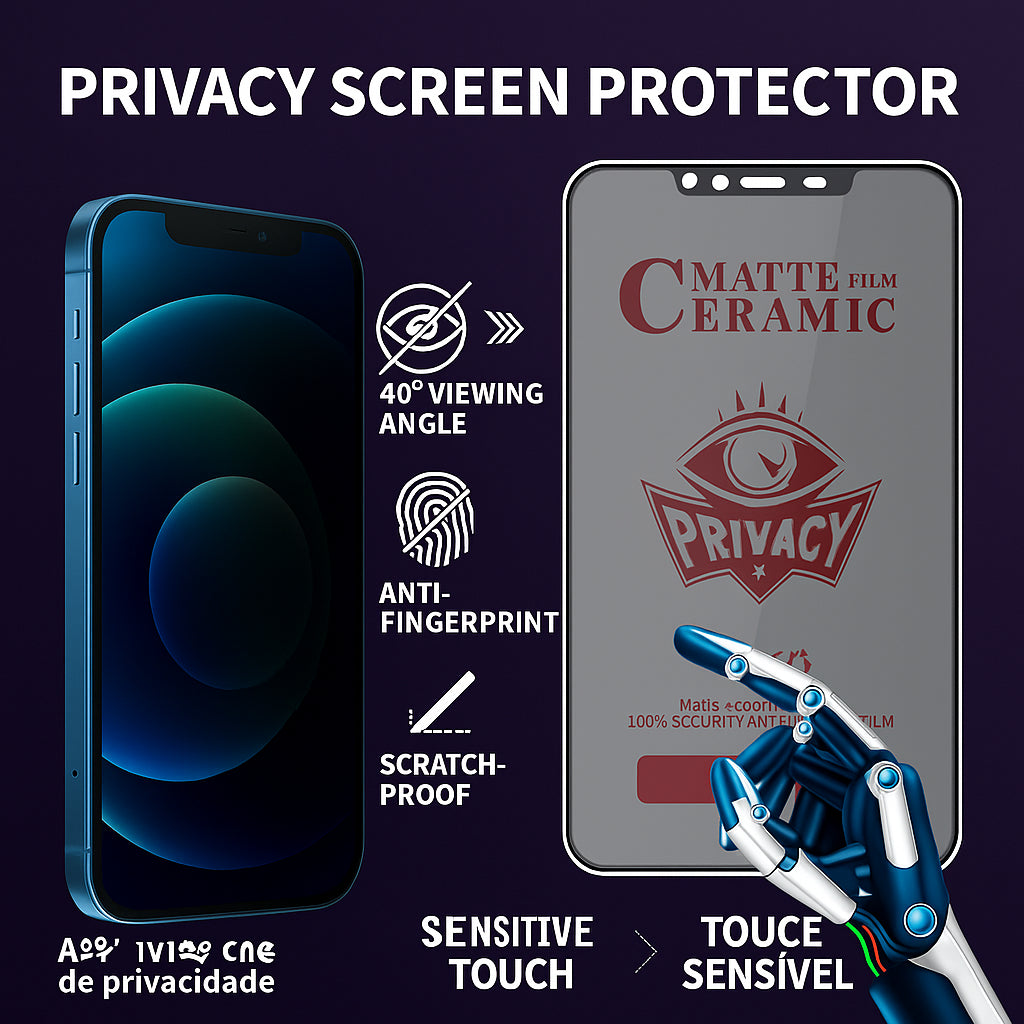 🔒 Película Protetora de Tela Cerâmica Flexível Fosca Anti-Espião Premium 2.5D 9D para iPhone 📱✨