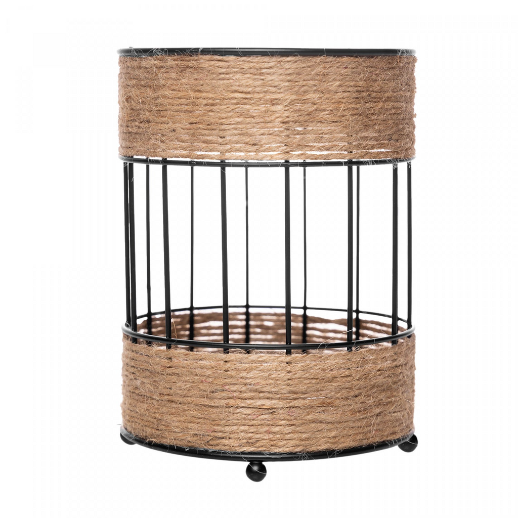 Material: metal com acabamento preto + detalhes em barbante, que conferem textura e personalidade.